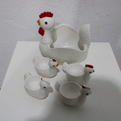Mother Chicken Basket 16cm Long Four Matching Egg Cups
