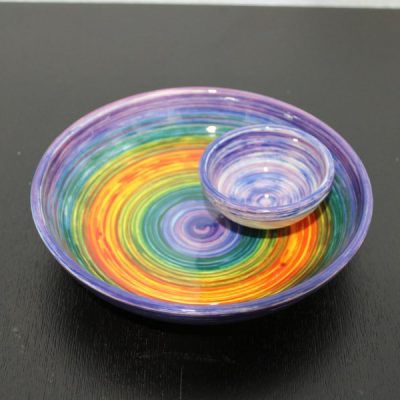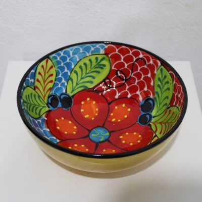 Hand Painted Ceramic Glazed Olive Bowl Made In Spain 18cm Diameter