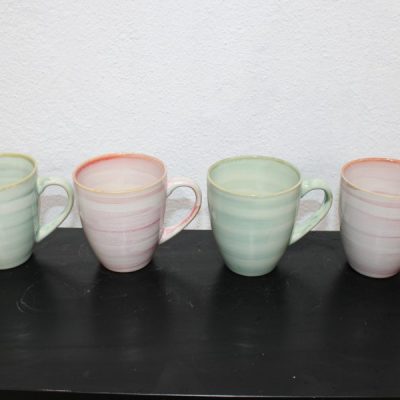 Four Matching Ceramic Mugs 10cm High 8cm Diameter