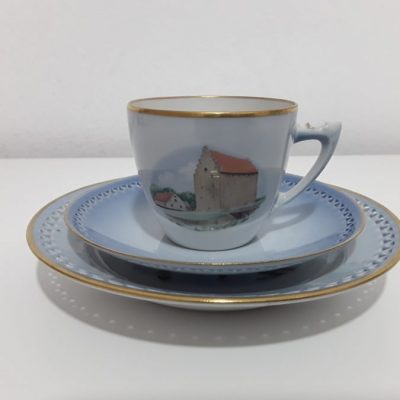 Vintage Copenhagen Porcelain Trio Set Cup Saucer Dessert Plate