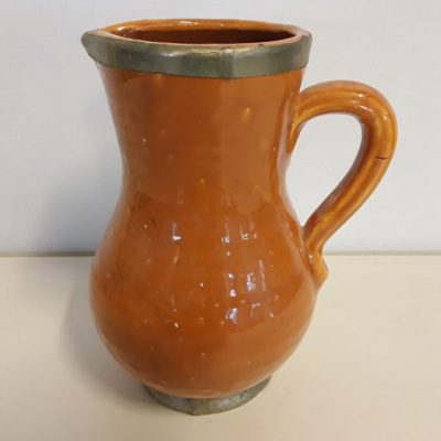 Vintage Ceramic Glazed Jug Metal Trim 17cm High