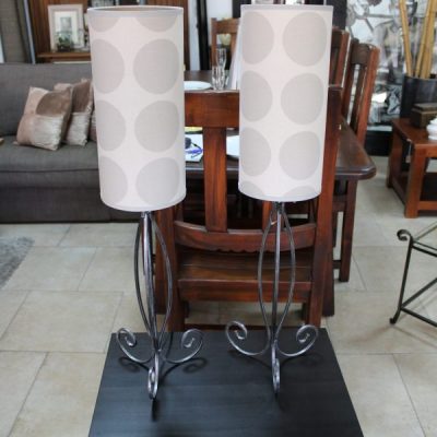 Two Matching Wrought Iron Stemmed Table Lamps 78cm High