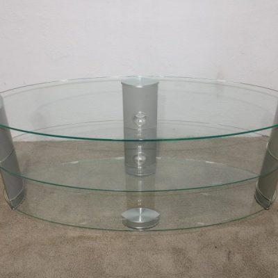 Three Tier Oval Glass TV Unit 49cm High 120cm Long 45cm Deep