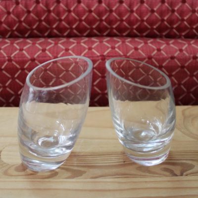 Two Matching Glass Bud Vases 8cm High 4cm Diameter