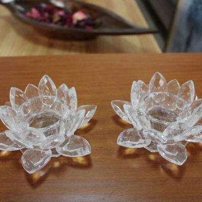 Two Matching Cut Glass Candle Holders 4cm High 12cm Diameter