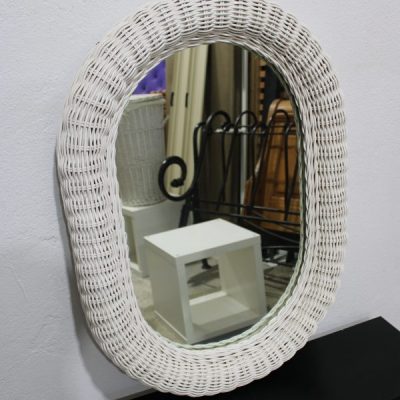 White Wicker Framed Oval Mirror 86cm Long 60cm Wide