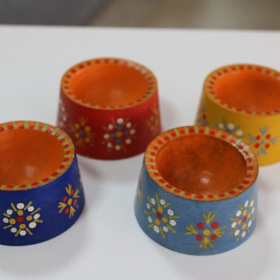 Four Matching Wooden Egg Cups 6cm Diameter 3cm High