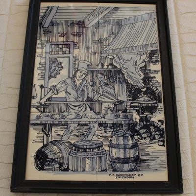 Wooden Framed Ceramic Tiled Baker At Work 35cm x 50cm