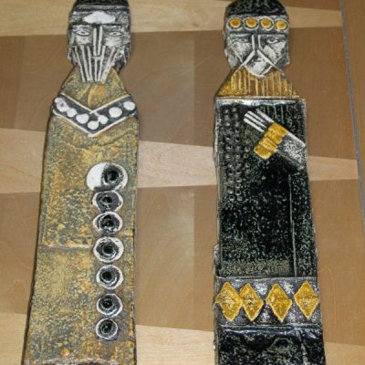 Two Matching Ceramic Glazed Wall Plaques 44cm Long 9cm Wide