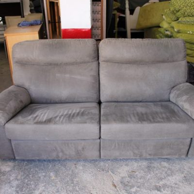 Grey Upholstered Fabric Two Seater Double Recliner Sofa