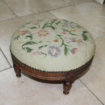 Wooden Framed Cushioned Top Vintage Stool 33cm Diameter 18cm High