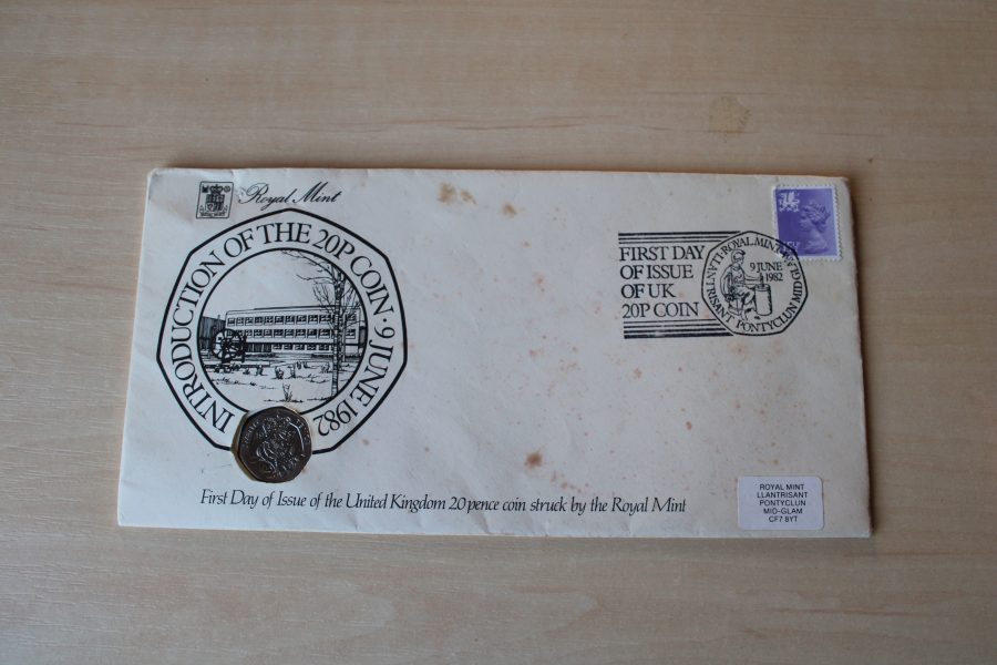 First Day Of Issue Of The United Kingdom 20 Pence Coin Struck By The Royal Mint 1982