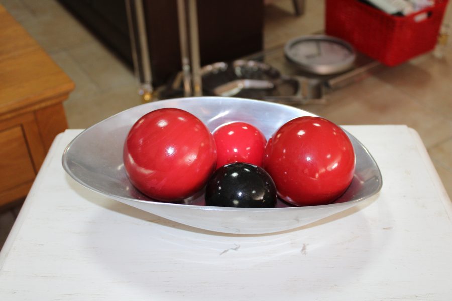 Cast Aluminium Bowl With Decorative Coloured Balls 31cm Long