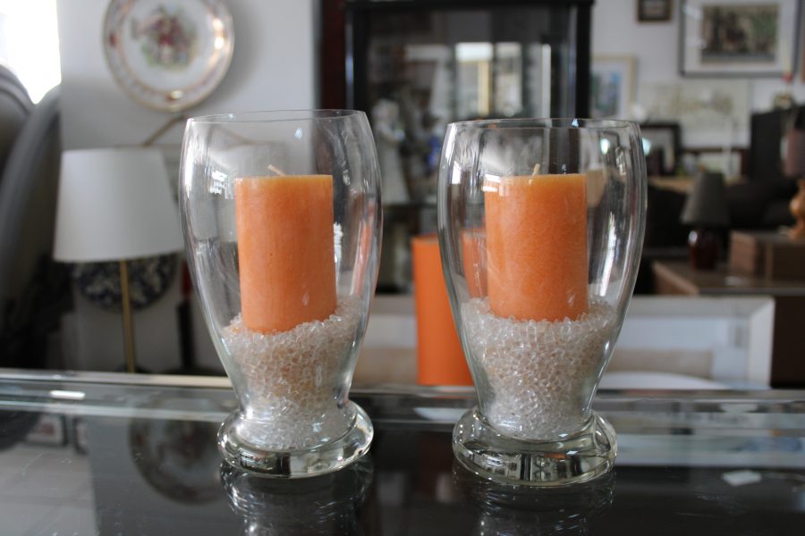 Two Matching Glass Candle Jars 17cm High 9cm Diameter