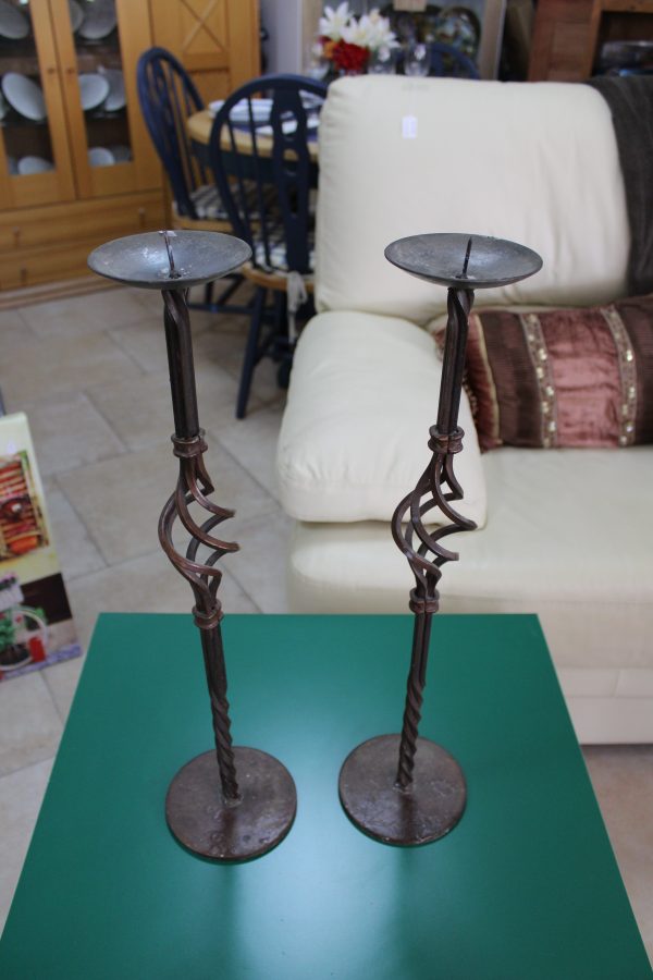 Two Matching Wrought Iron Candle Stick Holders 55cm High