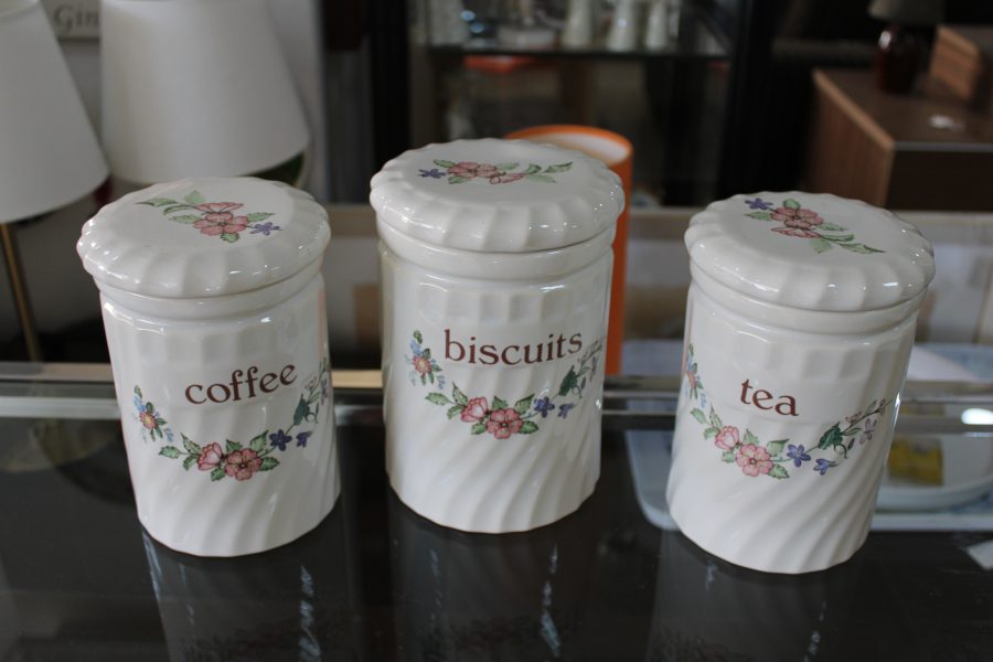 Ceramic Tea Coffee And Biscuits Canisters 16cm High