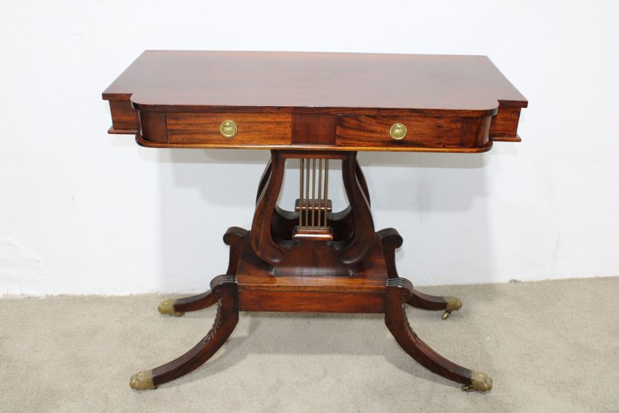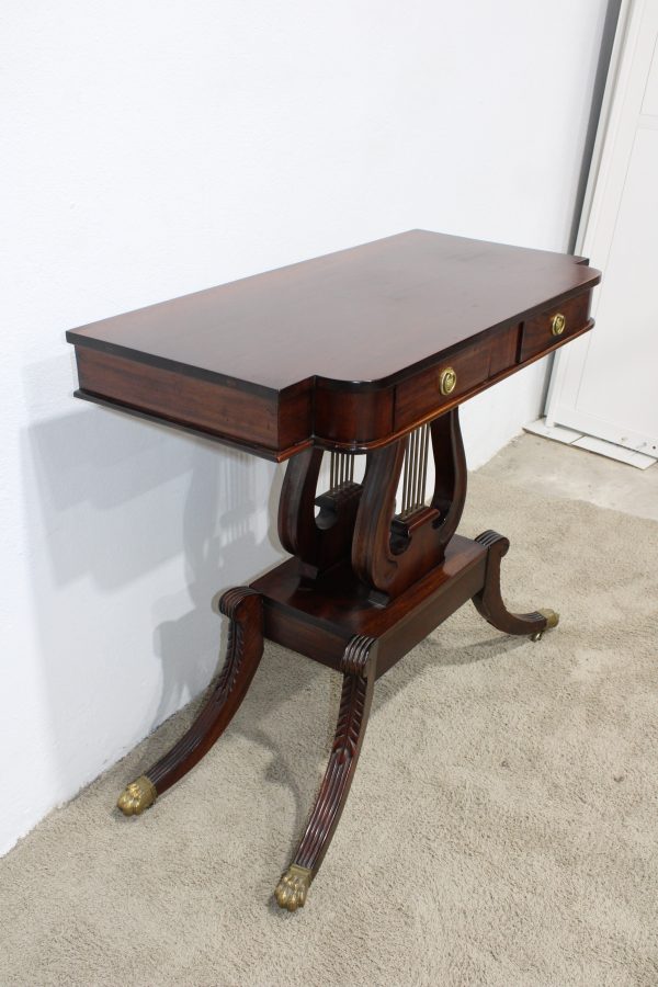 Carved Mahogany Double Harp Pedestal Console Table 82cm High 90cm Long 44cm Deep