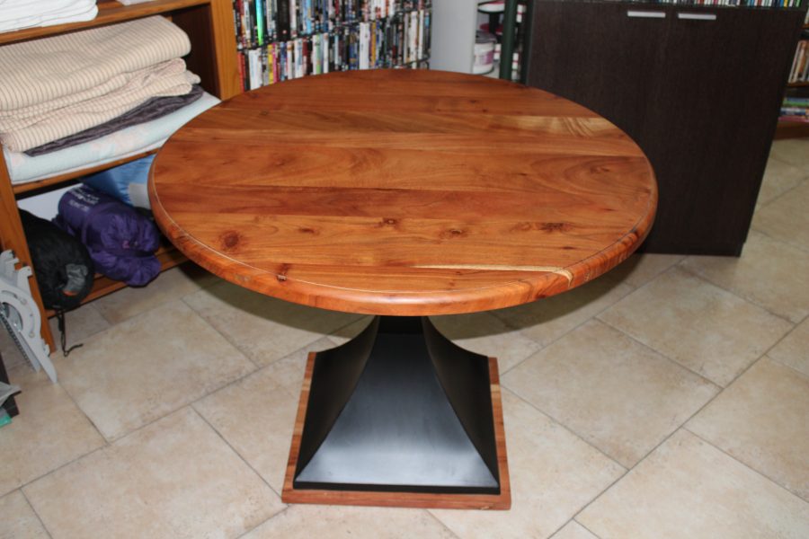Metal Base Wooden Top Table 100cm Diameter 77cm High