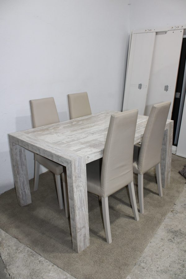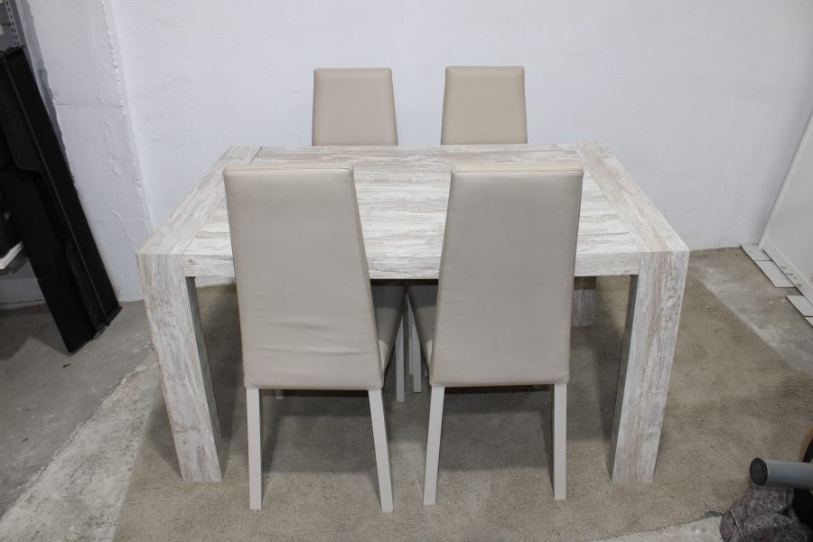 Tags: Dining set, Extendable White Washed Wooden Table, Four Matching Faux Leather Cushioned Chairs