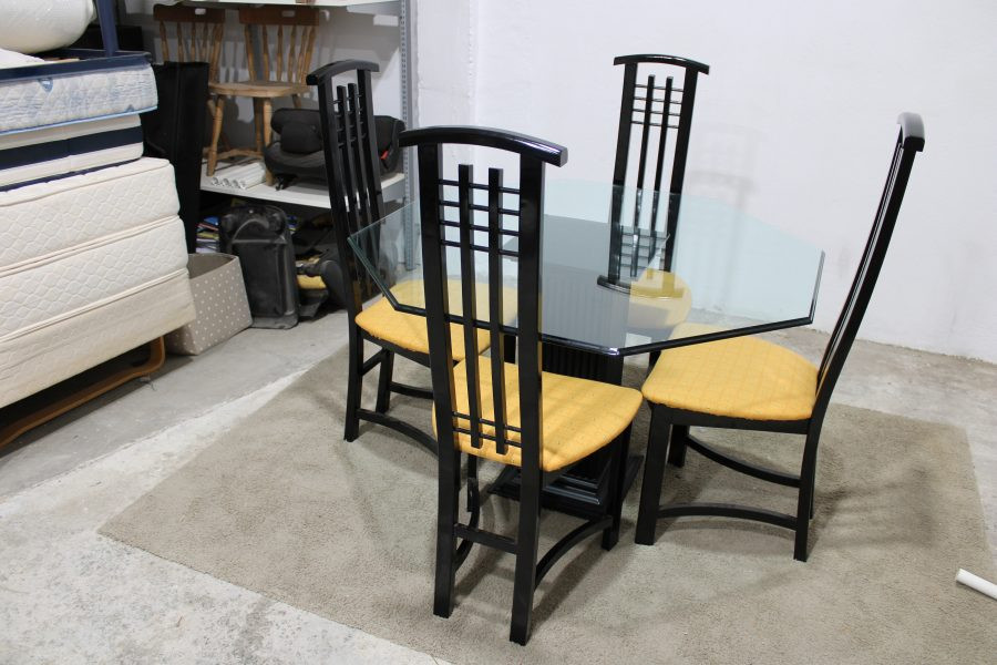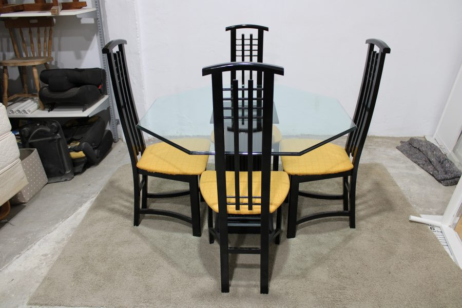 Tags: Dining set, Four Matching High Back Chairs, Wooden Pedestal Octagon Glass Top Table