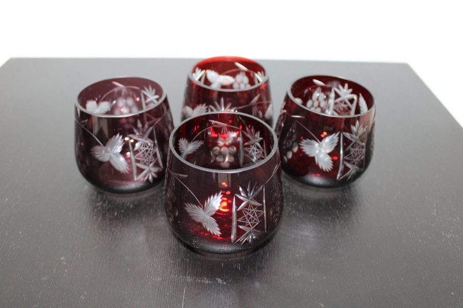 Four Matching Coloured Glass Drinking Beakers 7cm Diameter 7cm High