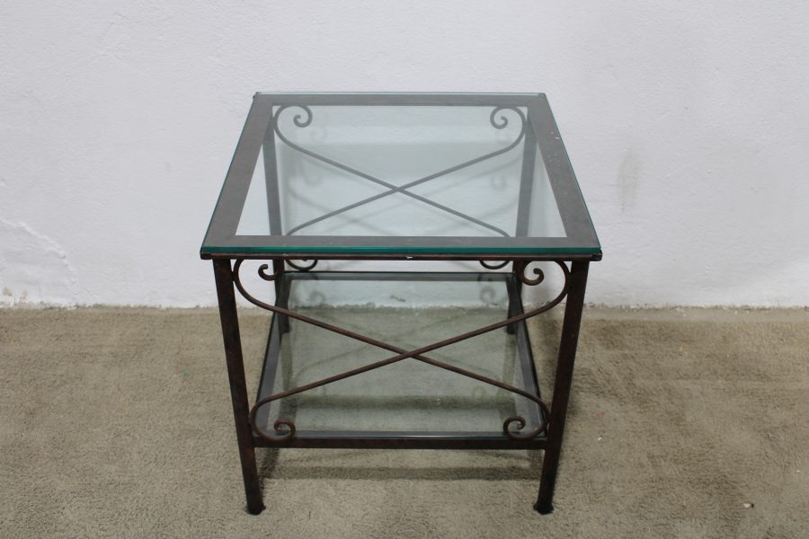Metal Framed Glass Two Tier End Table 55cm x 55cm 57cm High