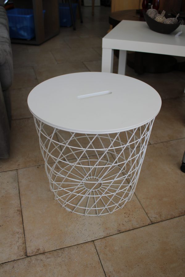 Metal Wire Basket Wooden Top End Table 44cm Diameter 41cm High