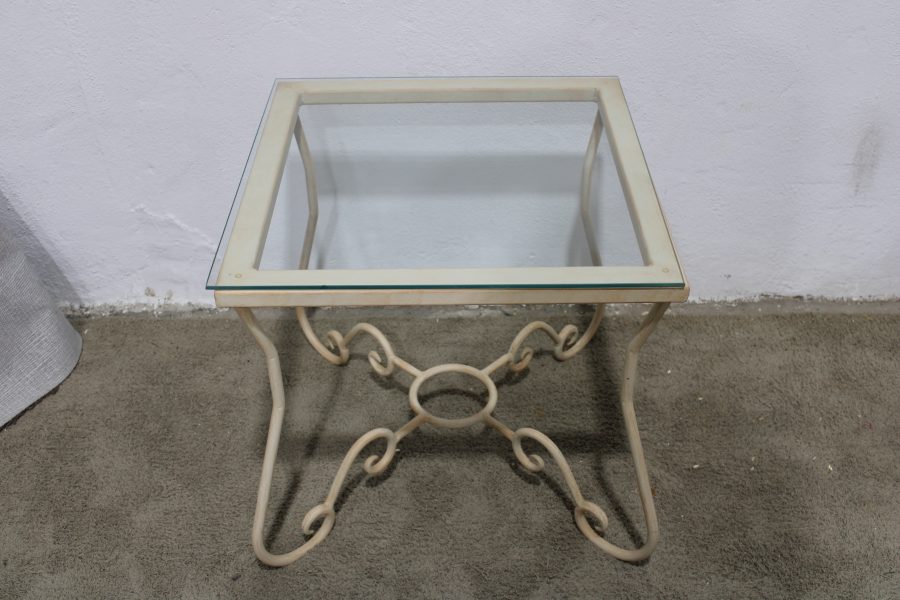 Wrought Iron Framed Glass Top End Table 55cm x 55cm 55cm High