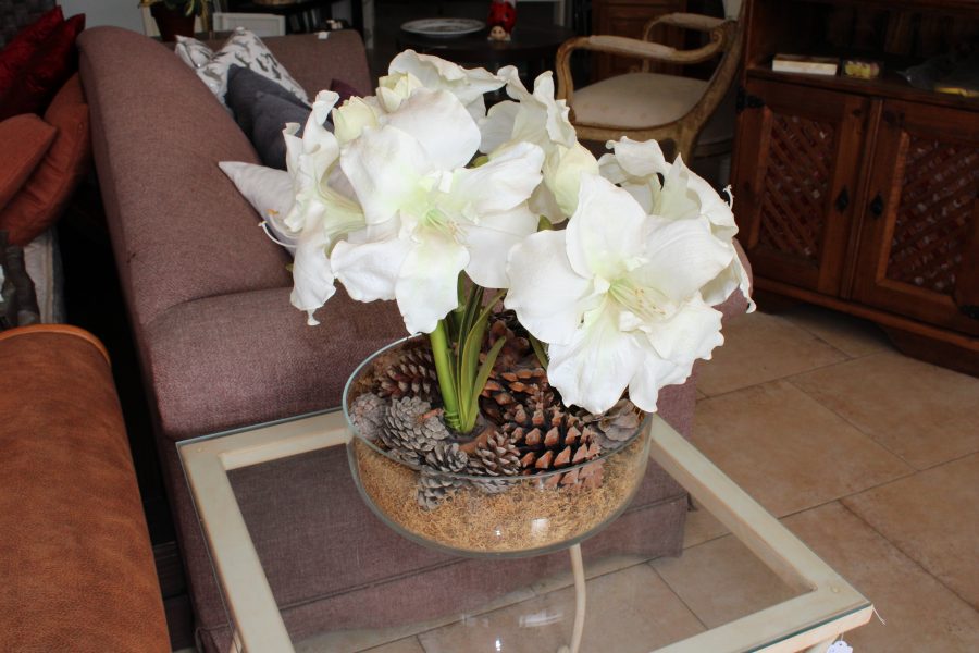 Artificial Flower Display Within A Glass Bowl