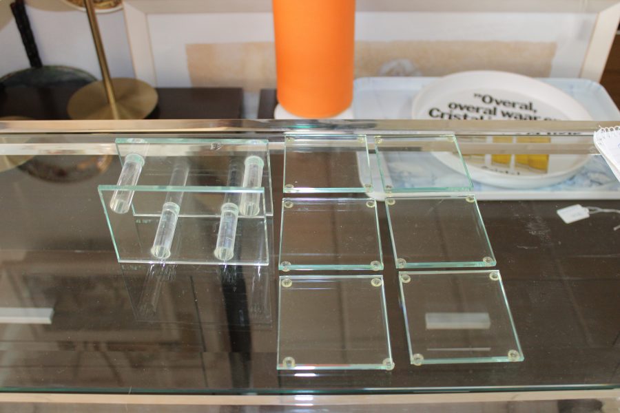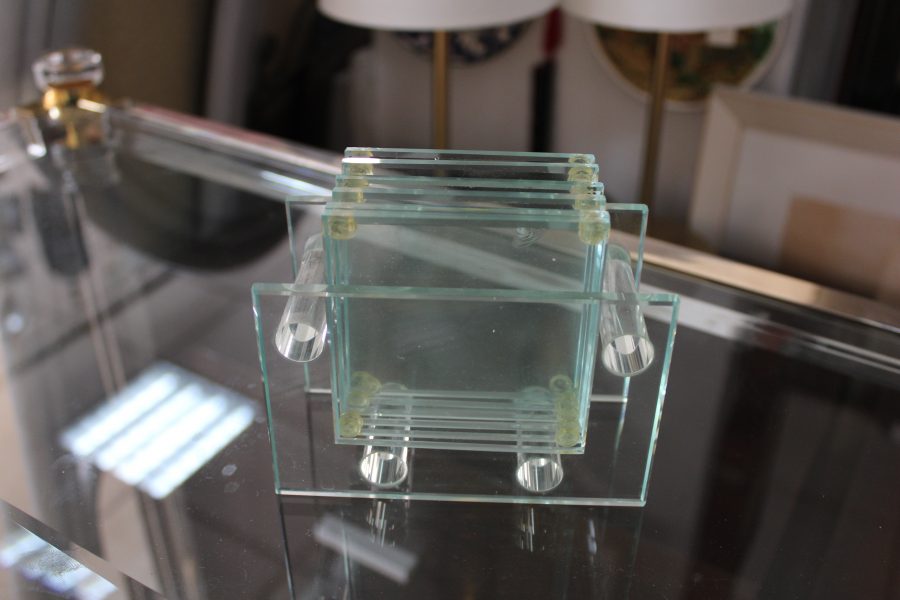 Six Matching Glass Plate Coasters Glass Holder 8cm x 8cm