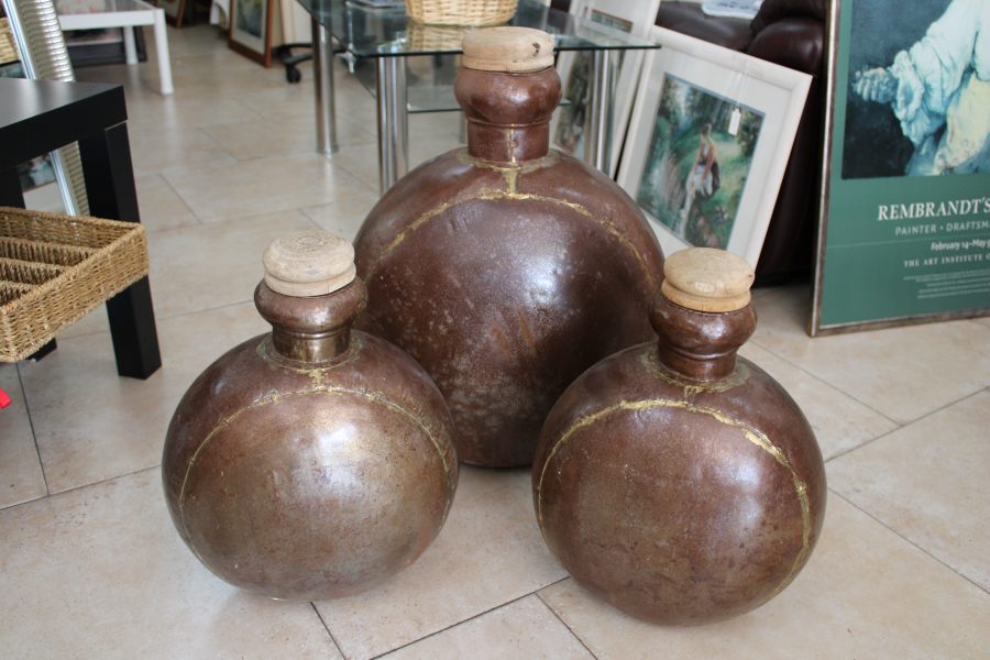 Three Vintage Moroccan Metal Flasks Big 56cm High Small 28cm High