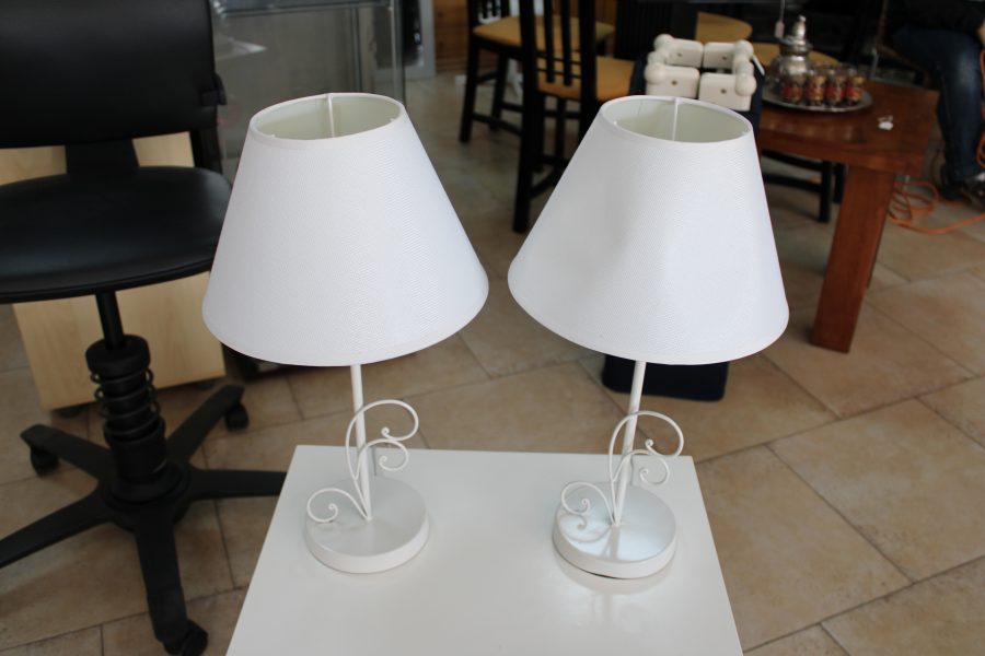 Two Matching Metal Stemmed Table Lamps 46cm High