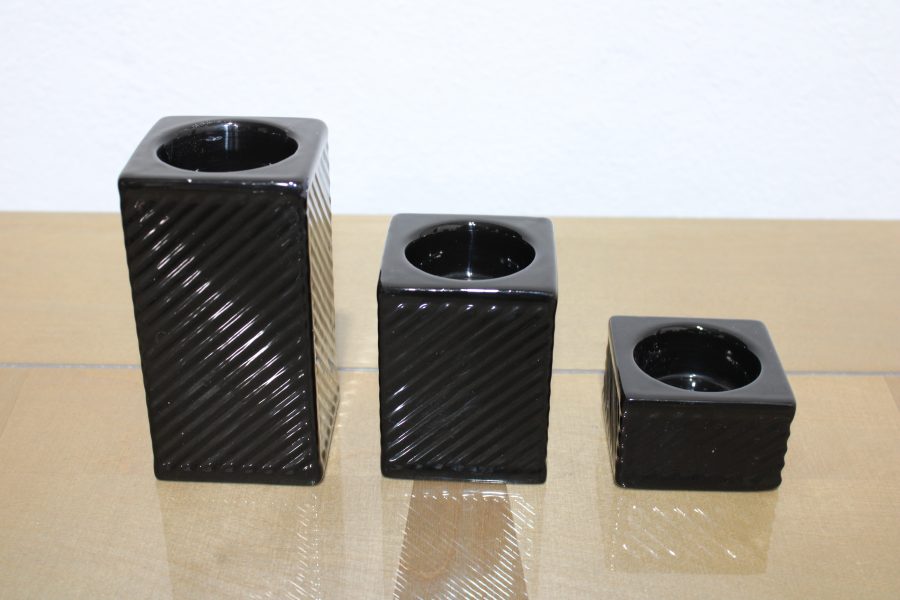 Set Of Three Ceramic Tea Light Holders Big 6cm x 6cm 12cm High Medium 6cm x 6cm 8cm High Small 6cm x 6cm 4cm High
