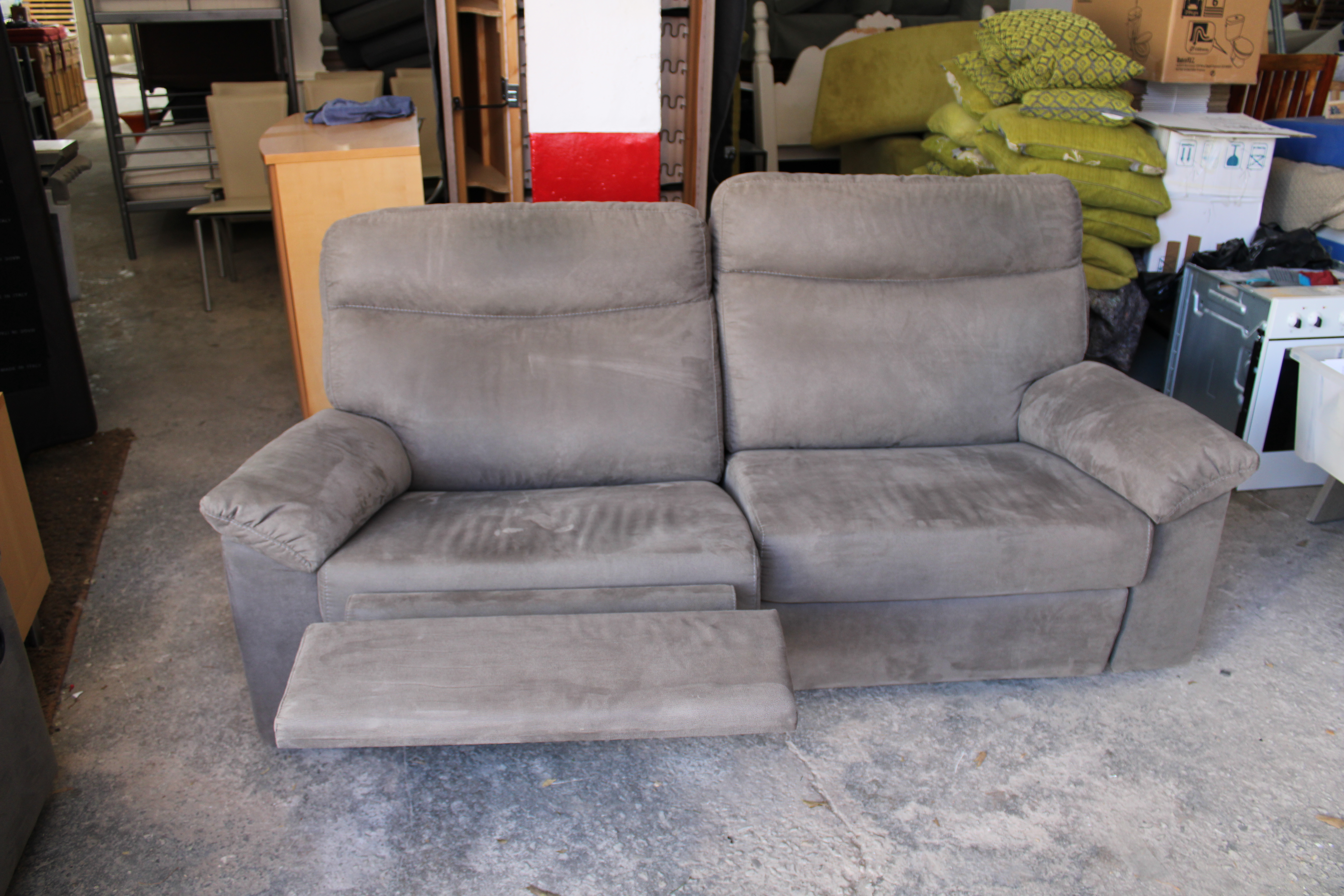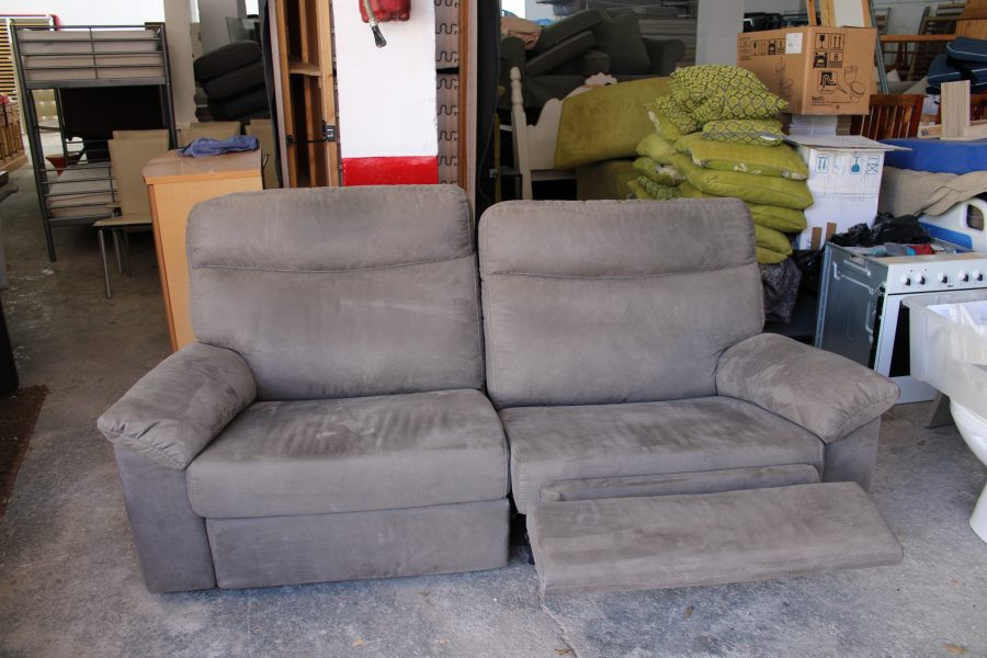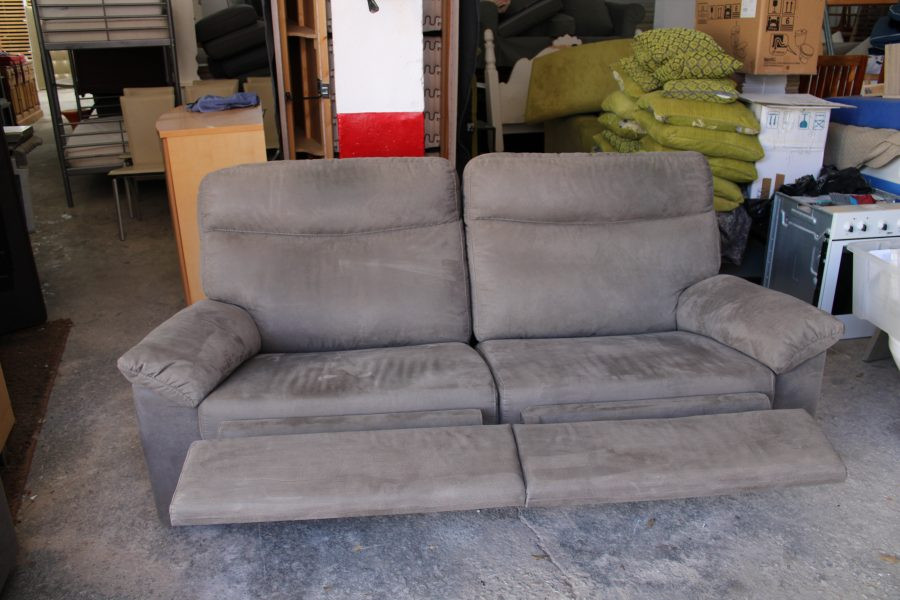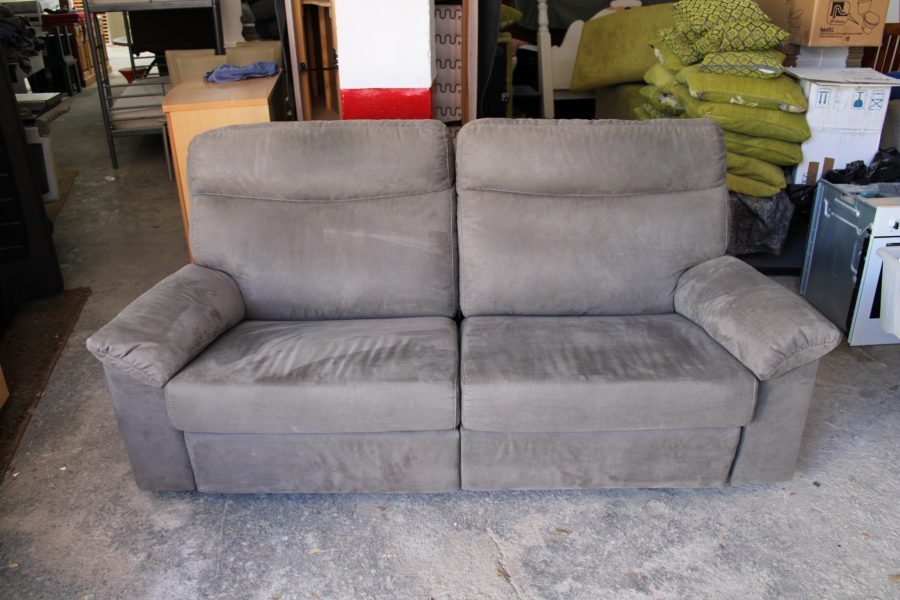 Grey Upholstered Fabric Two Seater Double Recliner Sofa