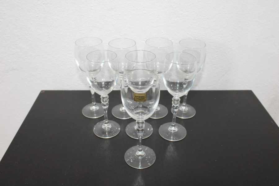 Eight Matching Glass Wine Goblets 16cm High 5cm Diameter